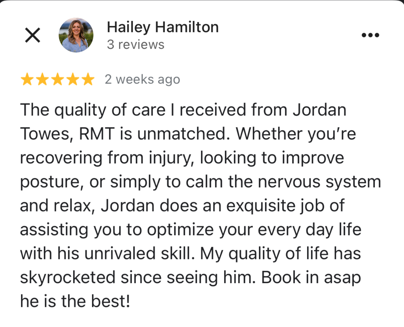 “The quality of care I received from Jordan is unmatched.